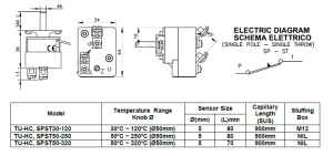systems. Adjustable with automatic reset “ST” contacts with screw terminals and stainless steel capillary and bulb with stuffing box M12 for 120ºC range.